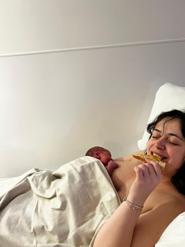 I gave birth in the Birth Centre in St Mary’s which I would recommend to anyone who wants a midwife led labour. The active phase of labour was as I’d expected, I had gas and air and was in the pool for the majority of the active labour as planned and I was able to use my hypnobirthing techniques to keep calm and motivate myself through the contractions. We used the template birth plan from HPHB before the birth so that my partner was able to confidently advocate for me should I need it.