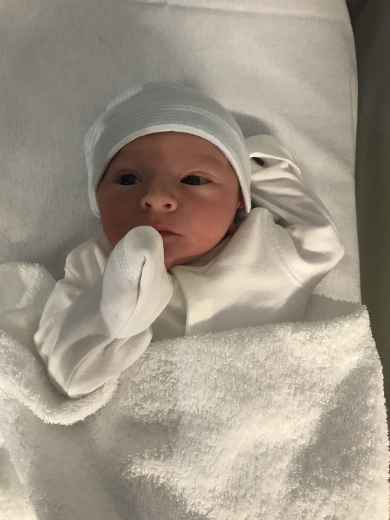 Everything then happened very quickly – within 10/15 minutes my baby was born and I could hear him crying, it was amazing. They took him to be cleaned which felt like a really long time but may have only been minutes. In our birth plan we had asked for skin to skin immediately and to cut the cord however nobody asked us at the time and so looking back we should have been more vocal about that. But once he was on my chest looking at me it didn’t matter. He was perfect! It was so magical. The team were really great and when I found the next bit painful or uncomfortable – they gave me pain relief to help.