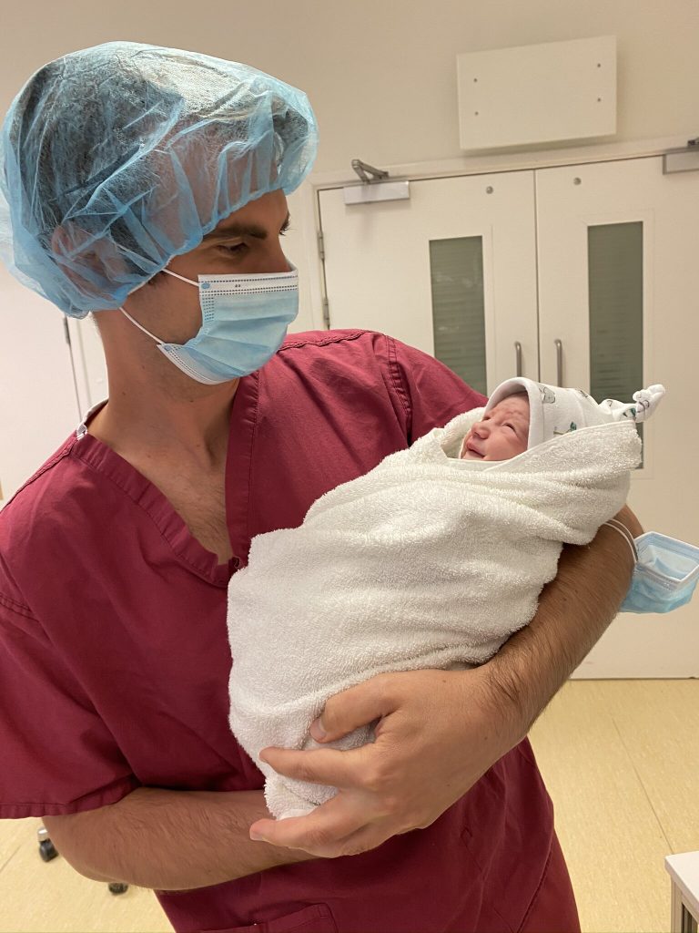 When I saw my baby at first, it was a sense of relief that everything with her was ok and we had a baby with 10 fingers and 10 toes 🙂 My partner was with us in the theatre and got to cut her cord and hold her at the beginning, which was very sweet. After that, in the postnatal ward, we cuddled skin-to-skin for hours and this felt very special.
