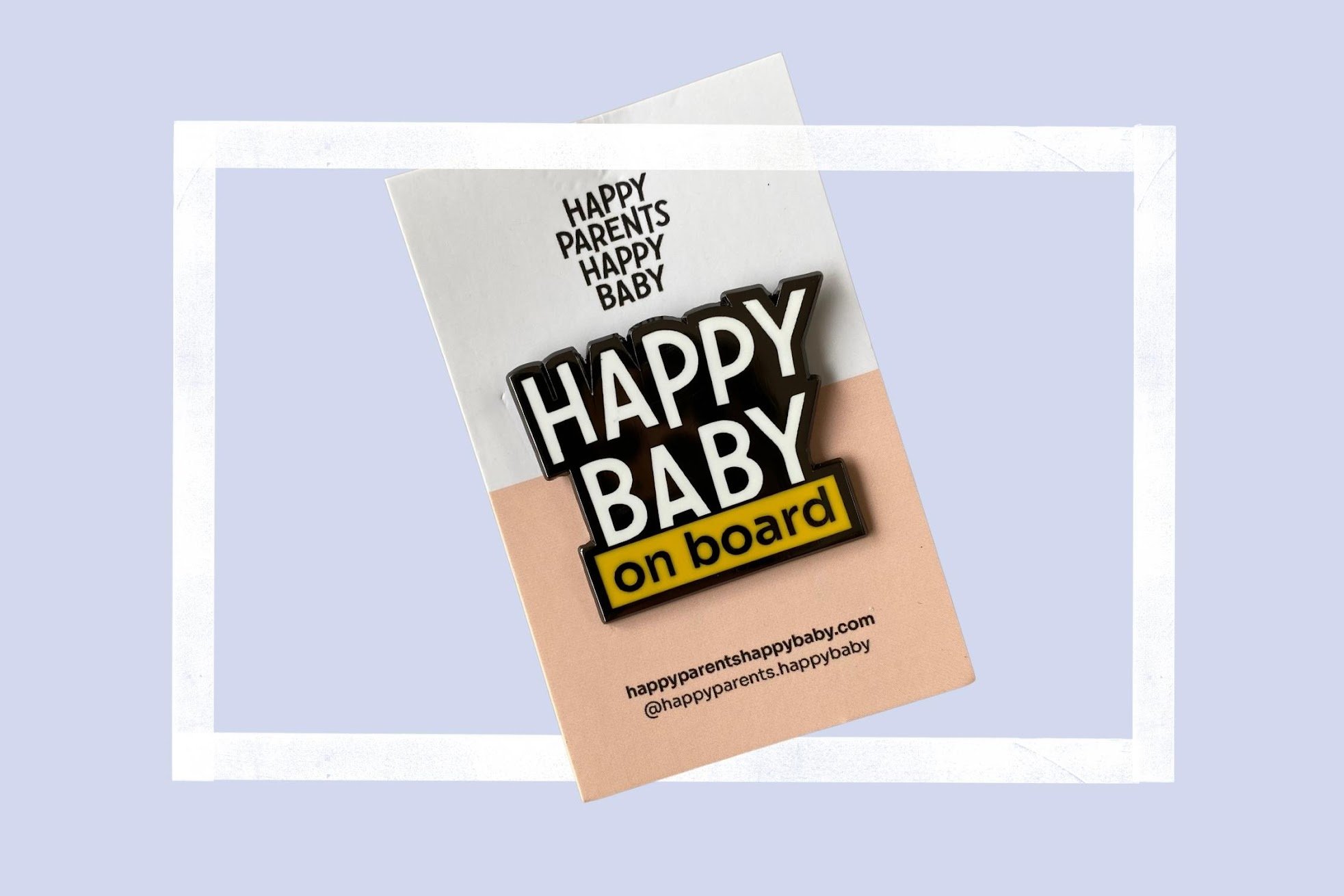The Happy Baby on board badge offers a fun and modern alternative to traditional designs.