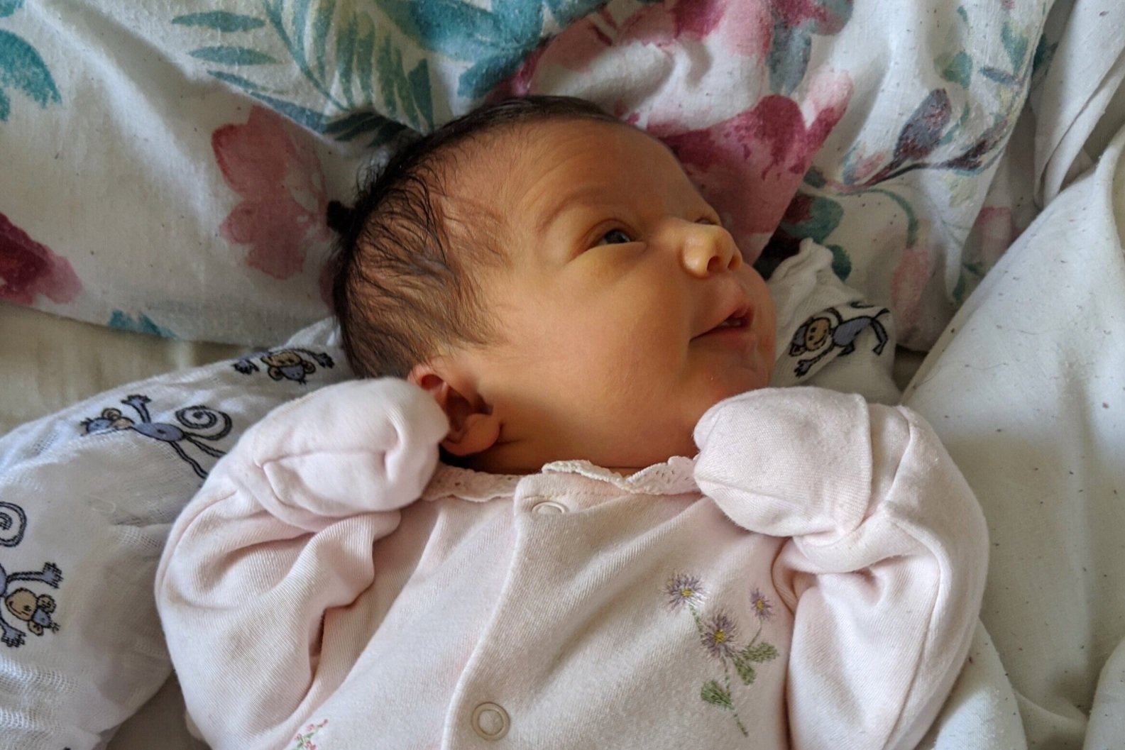 “I had Braxton Hicks on the Friday night and things started to happen around 3pm on Saturday. I had a bath and used my breathing until around 5pm and then got out and started using the TENS machine while I watched my favourite films. We went into hospital at 10pm and I was 2cm. We went home and I kept listening to my favourite HPHB relaxations! We returned to hospital at 1am and I was 4cm! I took a paracetamol and Codeine and I was in a birthing pool for about 2 hours while my husband massaged my back – he kept reminding me of the breathing exercises. I got out the bath to be monitored and the actual pushing lasted an hour…Kaila was born at 5:47am on the Sunday morning!
